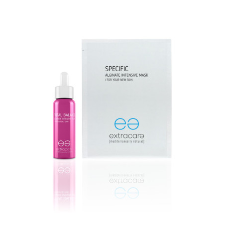Intensivt system för fet hud. 42 ml * 6 x 27 gr. Total Balance Alginate Intensive Fluid – Intensiv vätskeaktivator för fet hud. Ingredienser: Rödklöver, som reglerar talgnivåerna, gör huden friskare och uppfriskad. Skaka före användning. 96,27 % ingredienser av naturligt ursprung. Specifik Alginate Intensive Mask – Algpulvermask för en kraftfull behandling. Intensiv effekt på alger. Ingredienser: Kiselgur låter aktiva ingredienser tränga in i djupare lager, remineraliserar huden och gör den ljusare. 100 % ingredienser av naturligt ursprung.