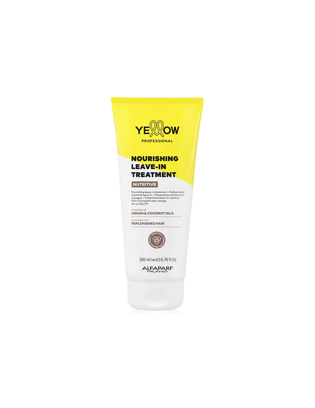 En lätt leave-in-kräm reder ut även mycket torrt hår och ger långvarig återfuktning och näring. Krämen gör håret lättare att kamma, ger håret mjukhet och glans. Tynger inte ner håret. Formeln är berikad med: - arganolja, som innehåller omega-3, omega-6 och vitamin E, återställer hårets vitalitet och ger håret silkeslen mjukhet; - kokosolja, som innehåller mjukgörande ingredienser och vitamin E, återfuktar och ger näring åt hårfibrerna perfekt, förhindrar att håret blir frissigt; - Aloetrix-komplexet med aloe vera, veteproteiner och UV-filter återfuktar håret, underlättar hårkamning och skyddar det yttre lagret av hårstrukturen. Båda oljorna har utmärkta återfuktande och regenererande egenskaper. ANVÄNDNING: Applicera en liten mängd kräm i fuktigt, handdukstorkat hår, fördela jämnt längs hela hårets längd och toppar. Skölj inte. Torka och styla håret som vanligt. För mer intensiv hårnäring och en långvarig effekt kan du applicera några droppar YELLOW Professional NUTRITIVE närande olja i torrt hår.