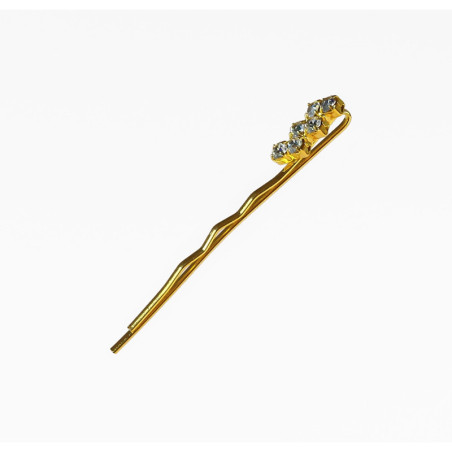 Hårspännen, dekorativa, vågiga, guldfärgade med 6 kristaller, 2 stycken
