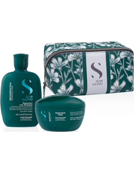Den vackra sminkväskan innehåller två av dina favorithårvårdsprodukter från Semi Di Lino RECONSTRUCTION-serien: