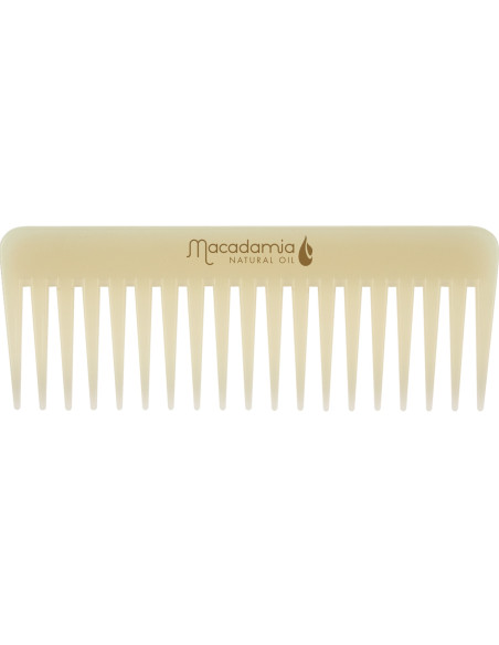 Macadamia-kammen, berikad med en speciell läkande olja, är skapad med hjälp av en innovativ formula som kombinerar läkande olja med specialutvecklade hartser. Resultatet är en kam som enkelt reder ut tovor eller svårkammat hår. Lämplig för regelbunden användning, den lämnar inte en oljig effekt på dina händer.