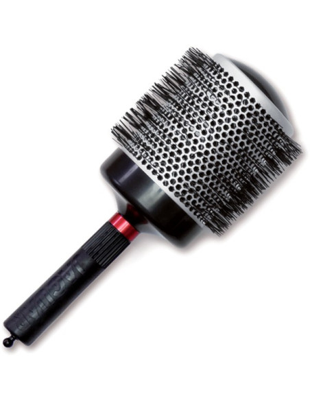 Värmebeständig professionell hårfönborste med aluminiumkropp och rundade nylonborst.