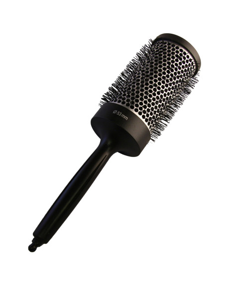 Hårborste Thermo. Baksidan av borsthandtaget har en plaststift som kan vridas och användas för att separera hårstrån. Diameter: Ø53 mm