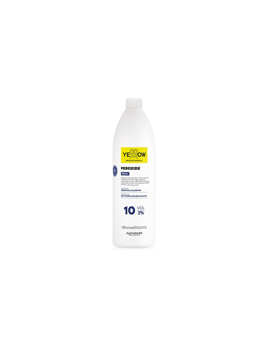 Yellow TECH+ PEROXIDE 3% (10 Vol) oxidationsmedel kan blandas med Yellow COLOR och Yellow BLEACH-pulver för hårblekning. Oxidationsmedlet kan användas för hårfärgning och delvis eller fullständig hårblekning. Oxidationsmedlet påverkar hårbotten och hårstrukturen varsamt under färgning eller blekning, tack vare komplexet i kompositionen som stärker hårstrukturen, och arganolja, som ger håret mjukhet, elasticitet och glans. Formeln är berikad med - arganolja, som innehåller Omega 3, Omega 6 och vitamin E, återställer hårets vitalitet och ger håret silkeslen mjukhet; - Aloetrix-komplexet, som innehåller aloe vera, veteproteiner och UV-filter, återfuktar håret, underlättar hårkamning och skyddar det yttre lagret av hårstrukturen. ANVÄNDNING: För hårfärgning: blanda den valda nyansen av Yellow COLOR hårfärg med oxidationsmedlet Yellow TECH+ PEROXIDE 3% (10 Vol) i proportionerna 1:1,5 (1:2 för HIGH LIFT hårtoner). Hålltiderna anges i bruksanvisningen för hårfärgen (du kan ladda ner instruktionerna genom att skanna QR-koden på förpackningen till Yellow COLOR hårfärg). Efter hållatiden, skölj med vatten och tvätta sedan håret med schampo. För hårblekning: blanda Yellow BLEACH-pulver med Yellow TECH+ PEROXIDE 3% (10 Vol) oxidationsmedel i proportionerna 1:1,5 till 1:2 beroende på vald hårblekningsteknik. Applicera i torrt, otvättat hår. Låt verka i håret i högst 50 minuter och skölj sedan noggrant och tvätta håret med schampo.