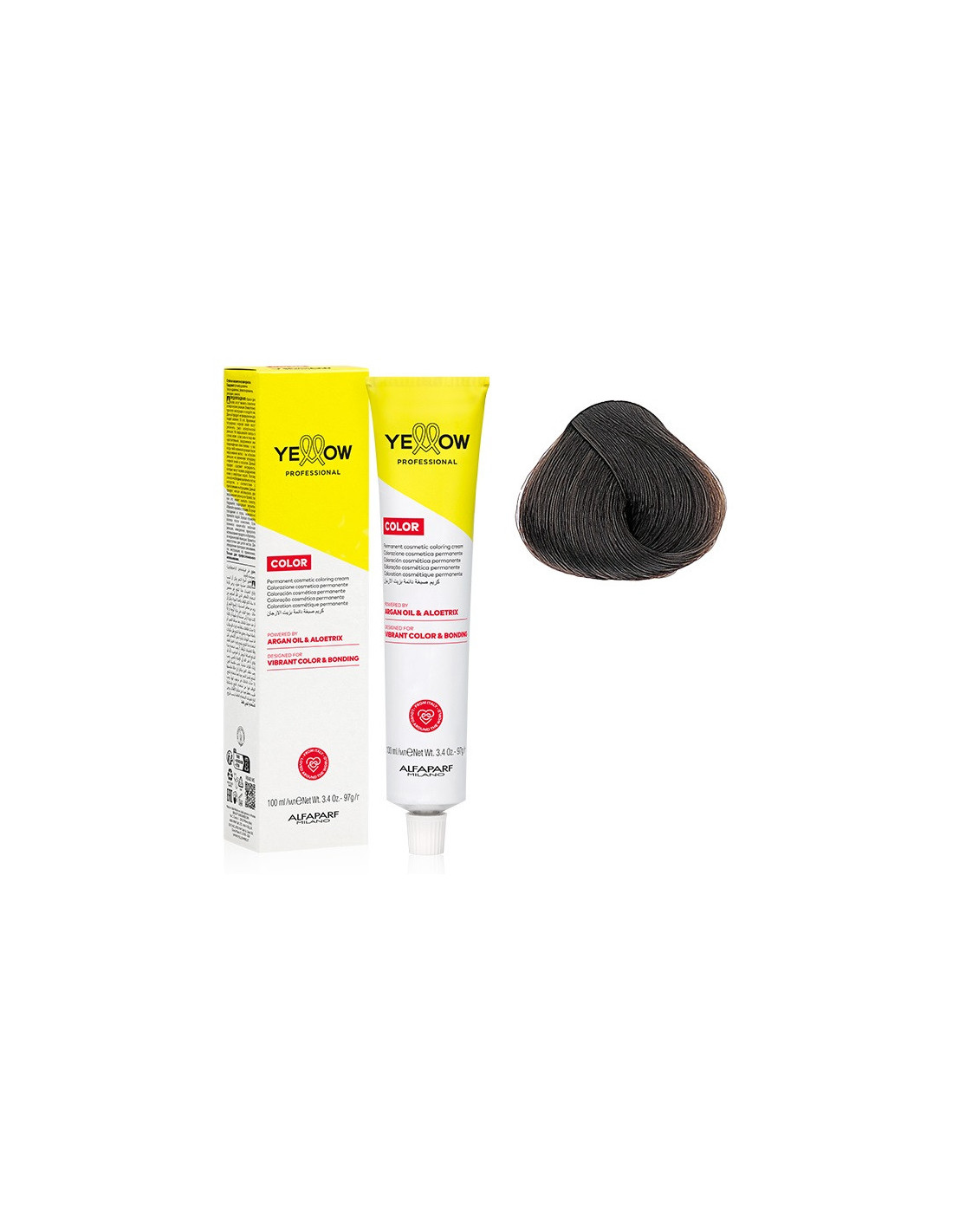 GUL FÄRG - professionell, närande permanent hårfärg som effektivt färgar håret, täcker grått hår till 100 % och är särskilt skonsam mot hårstrukturen och hårbotten, tack vare dess mycket låga ammoniakhalt. Resultatet efter färgning - glansigt, silkeslent mjukt och slätt hår. Hårfärg ger professionella resultat: • täcker håret jämnt, • färgar grått hår perfekt, • ger håret en naturlig och jämn ton, • är särskilt hållbar och efter färgning behåller hårtonen sin mättnad i 1 månad, • ger håret glans, återfuktar och ger håret näring. Tack vare det låga innehållet av alkaliska ingredienser ljusar och färgar YELLOW COLOR hårfärg håret mycket skonsamt, vilket bibehåller den optimala balansen i hårets pH-nivå. Hårfärgen är endast lämplig att blanda med oxidanterna YELLOW COLOR PEROXIDE eller TECH+ PEROXIDE. Den unika formulan för YELLOW COLOR hårfärg är berikad med: - Arganolja, som innehåller Omega 3, Omega 6 och vitamin E, och återställer hårets vitalitet och ger håret en silkeslen textur; - Aloetrix-komplexet, som innehåller aloe vera, veteproteiner och UV-filter, och återfuktar håret, underlättar kamning och skyddar det yttre lagret av hårstrukturen. ANVÄNDNING: Blanda den valda YELLOW COLOR hårfärgen i en icke-metallisk behållare med en av YELLOW COLOR PEROXIDE- eller TECH+ PEROXIDE-oxidanterna 1,5 % (5 vol.), 3 % (10 vol.), 6 % (20 vol.), 9 % (30 vol.) eller 12 % (40 vol.) beroende på vald behandling och önskat resultat. Listan över möjliga behandlingar, blandningsförhållanden för hårfärg och oxidationsmedel samt verkningstider anges i bruksanvisningen för hårfärgen YELLOW COLOR, som kan ses genom att skanna QR-koden på färgförpackningen med lämplig applikation på en mobil enhet.