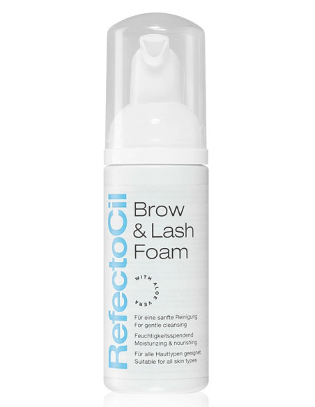 RefectoCil Brow & Lash Foam är ett milt rengöringsskum som är perfekt för rengöring av fransar och bryn före en lash- eller brow lift-behandling. Det mjuka skummet avlägsnar effektivt alla typer av makeup, smuts och överskott av olja – samtidigt som det är skonsamt mot huden. Skummet är berikat med Aloe Vera, en intensivt återfuktande och mjukgörande ingrediens som hjälper till att motverka torrhet. Efter användning känns huden lugnad, fräsch och väl förberedd inför nästa steg. Fördelar Rengöringsskum för fransar och bryn Ger optimal förberedelse inför lash- eller brow lift Passar alla hudtyper, även känslig hud Förbereder brynen för RefectoCil-färgning Skonsam mot huden Tar bort makeup, smuts och damm Återfuktande och mjukgörande effekt Mild formula för extra skydd Användning Skaka flaskan före användning. Applicera 1–2 pump på en bomullsrondell eller direkt på området. Massera försiktigt in i bryn och fransar. Torka av med en fuktig bomullsrondell.